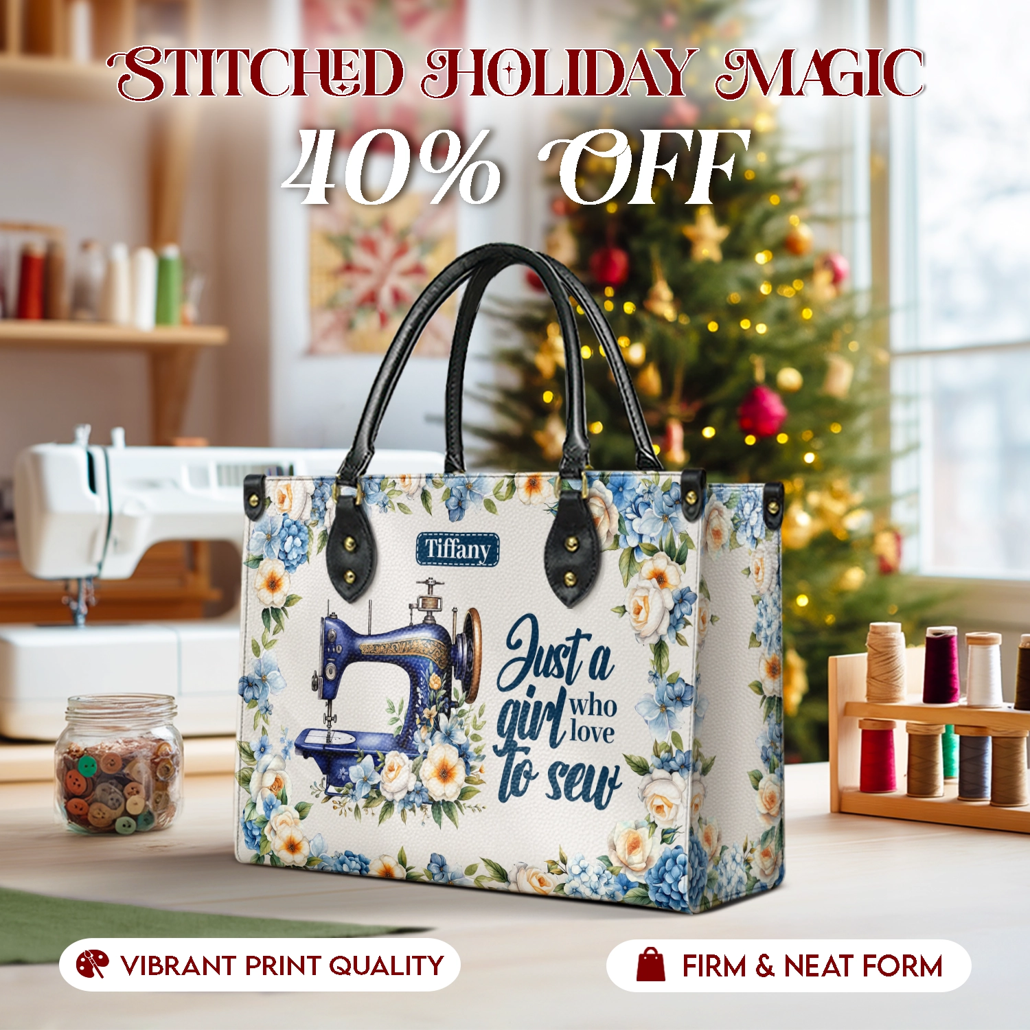 BloomNeedle QuiltJoy Bloom Personalized Leather Bag