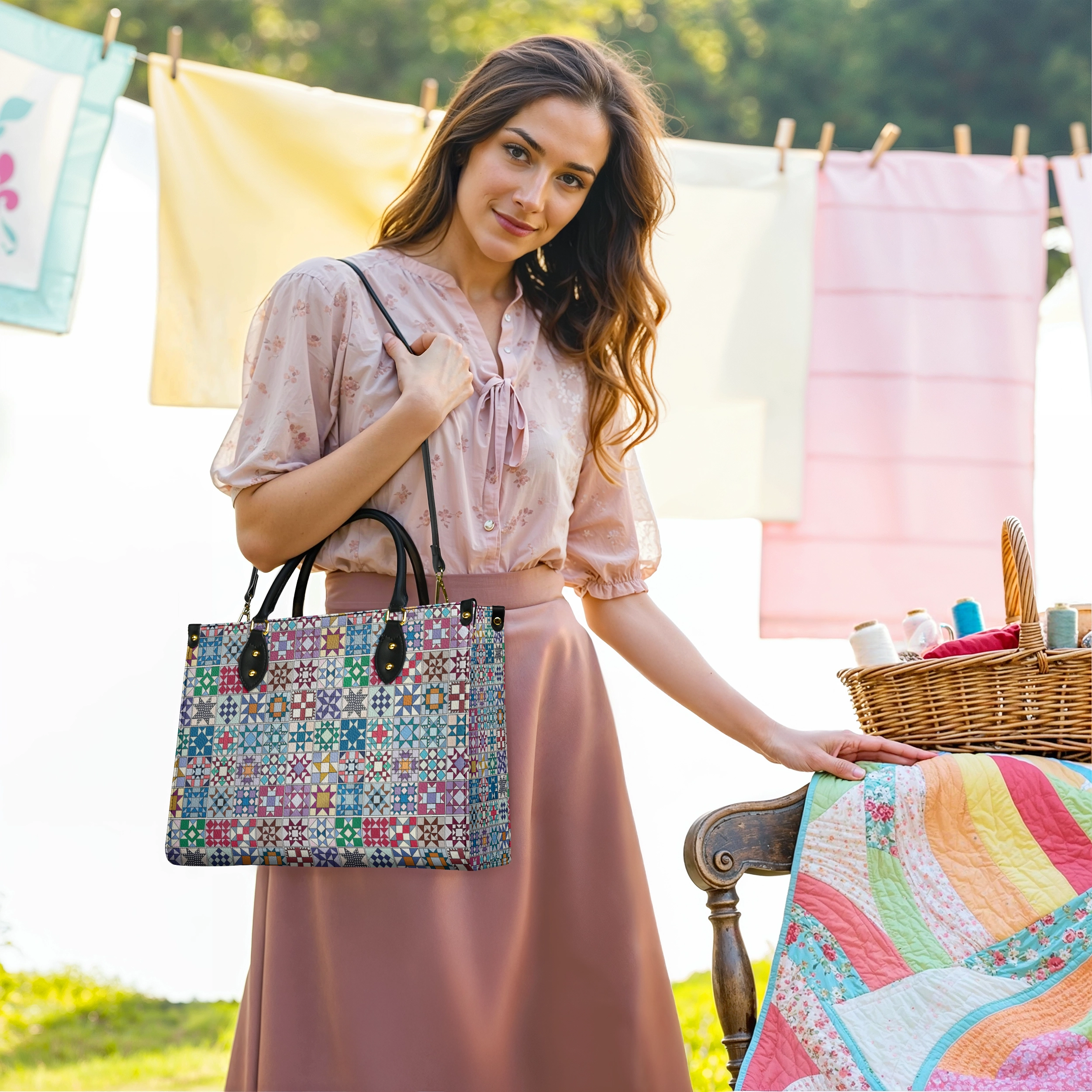 BloomNeedle Heritage Blocks Leather Bag