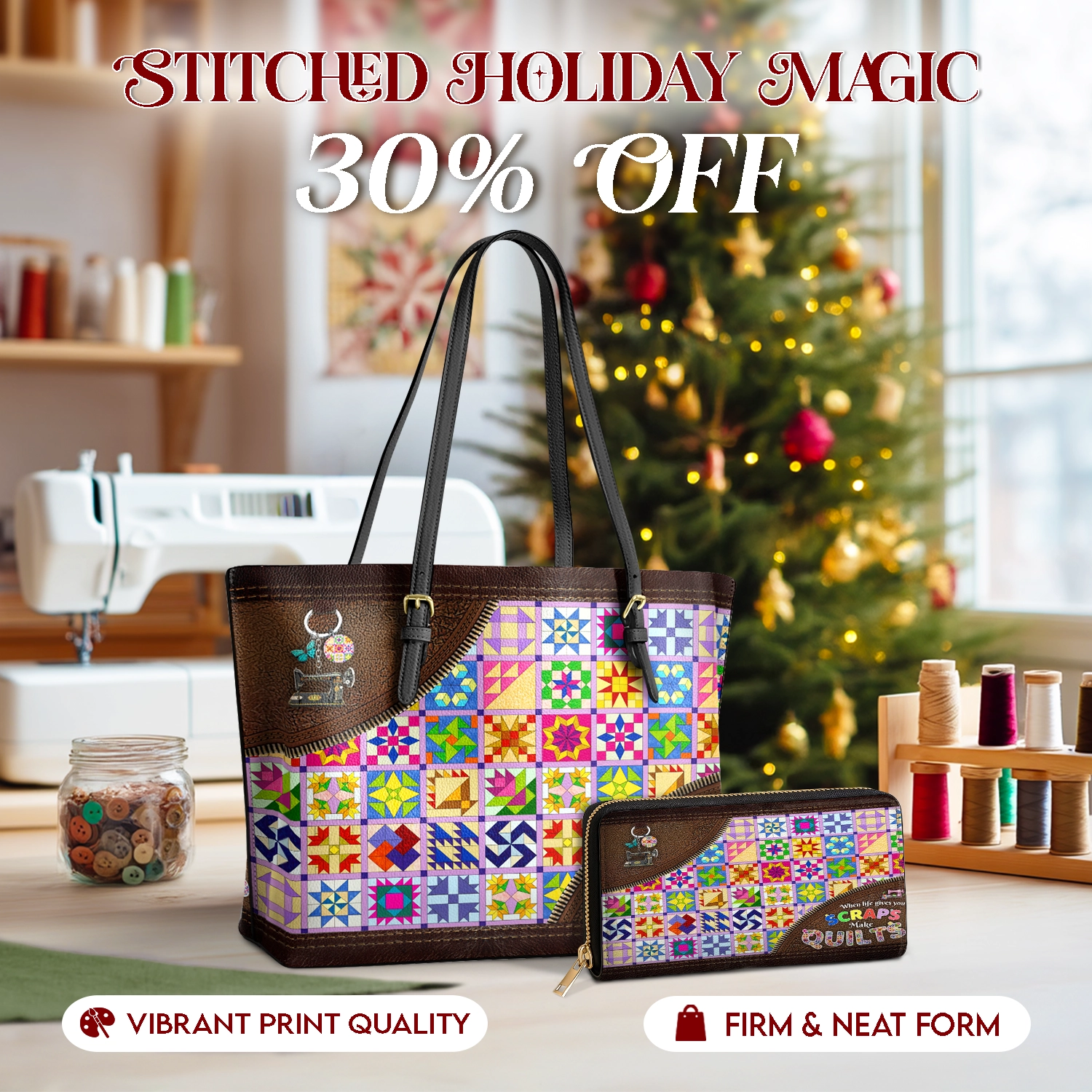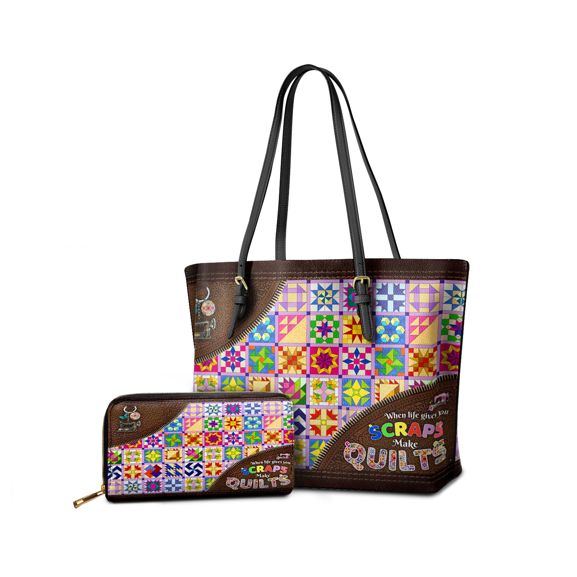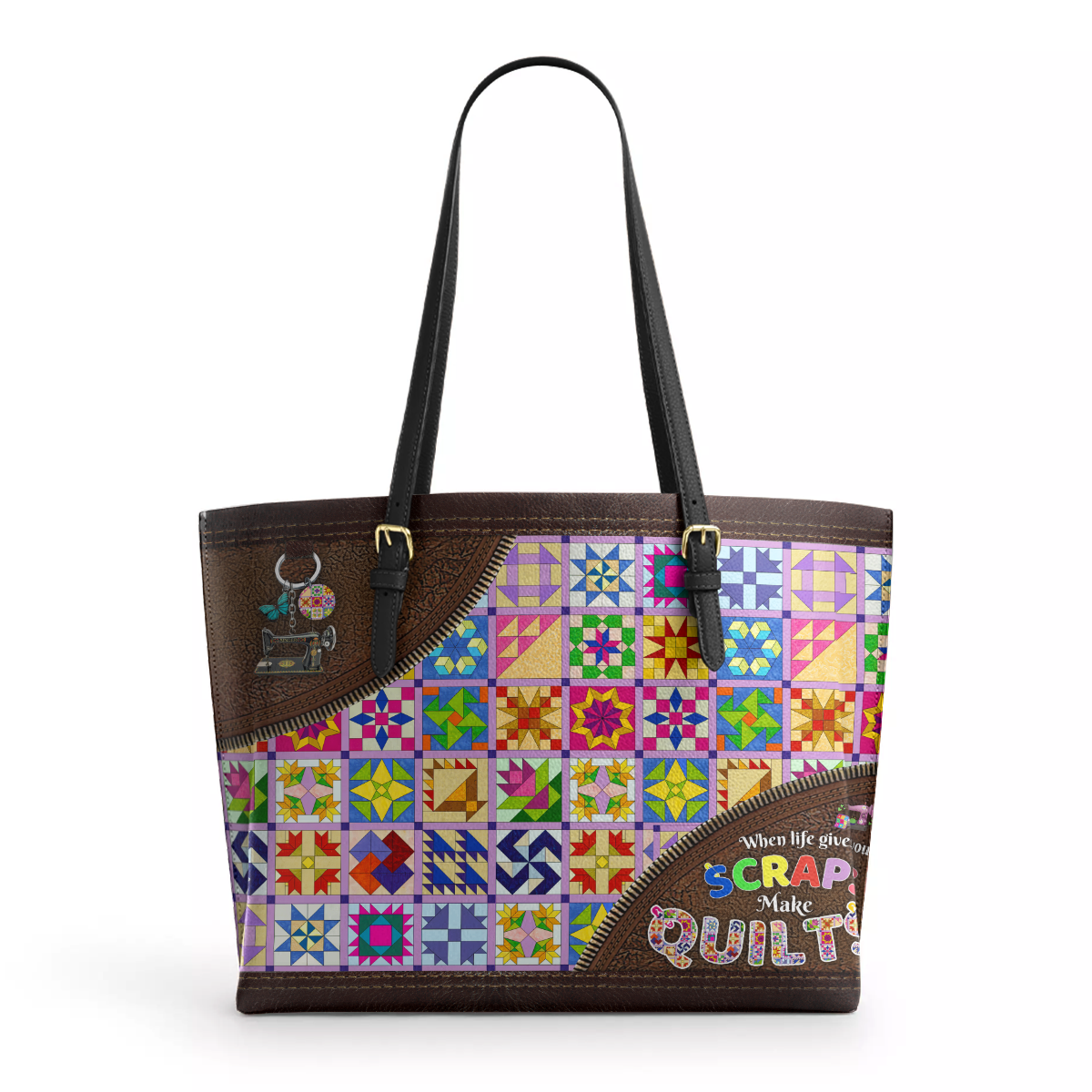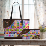 BloomNeedle Patchwork Bliss Leather Tote Bag