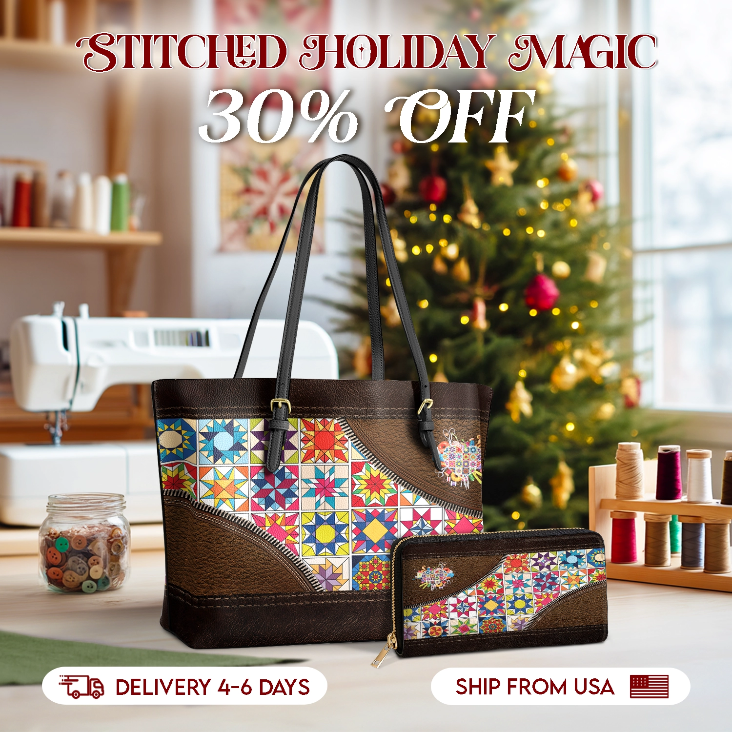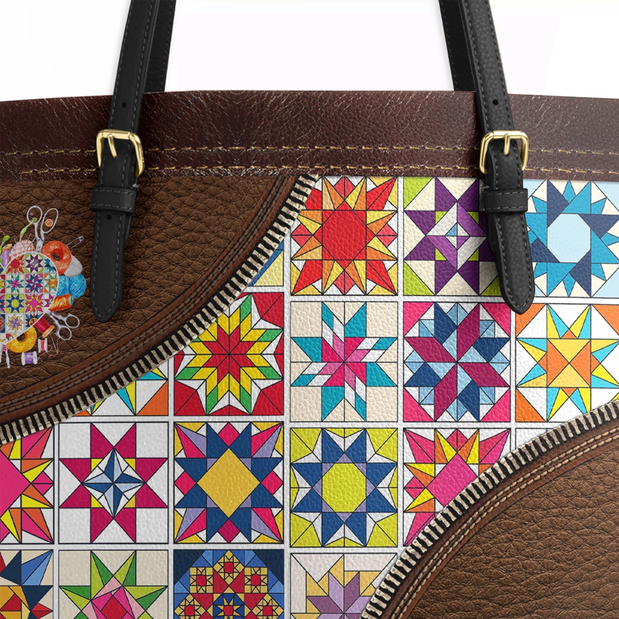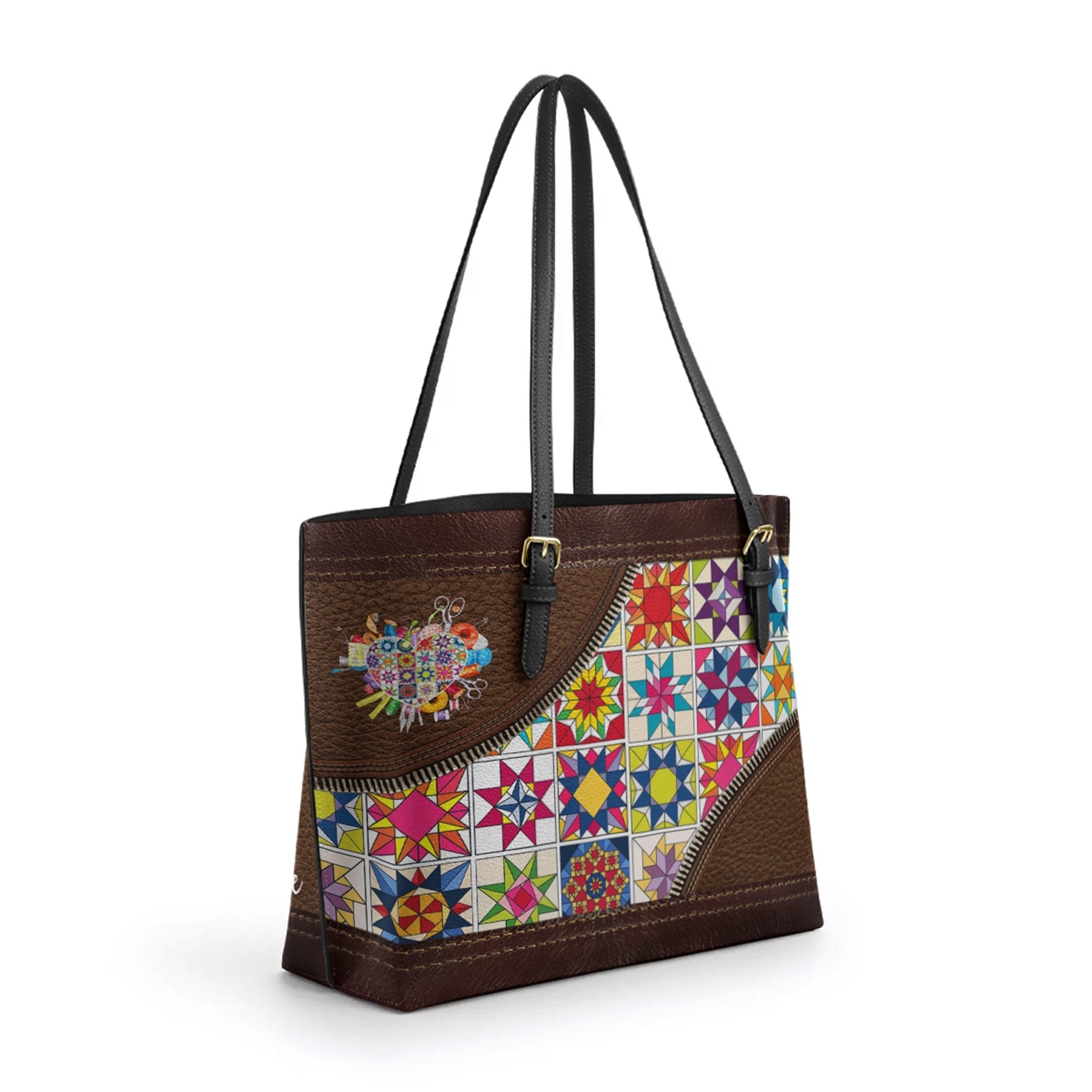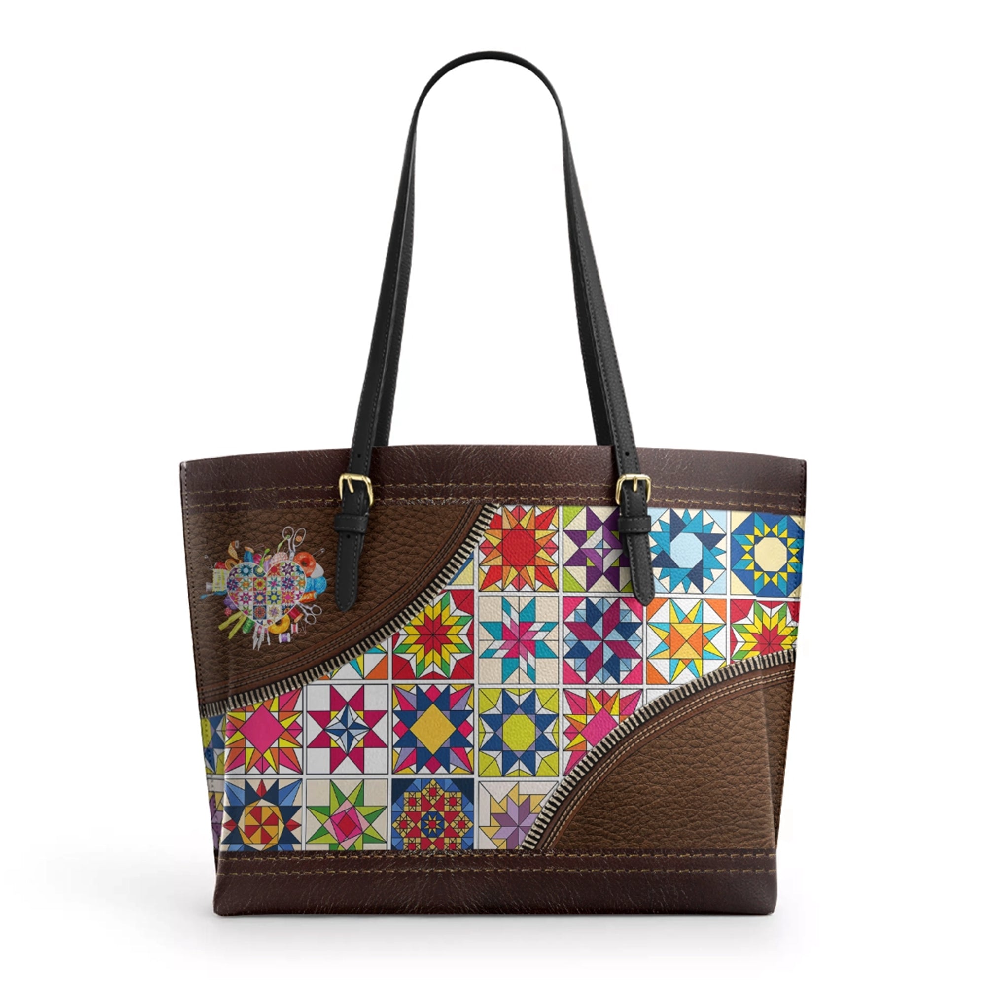 BloomNeedle Patchwork Bliss Leather Tote Bag
