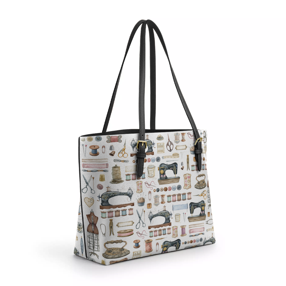 BloomNeedle Patchwork Bliss Leather Tote Bag