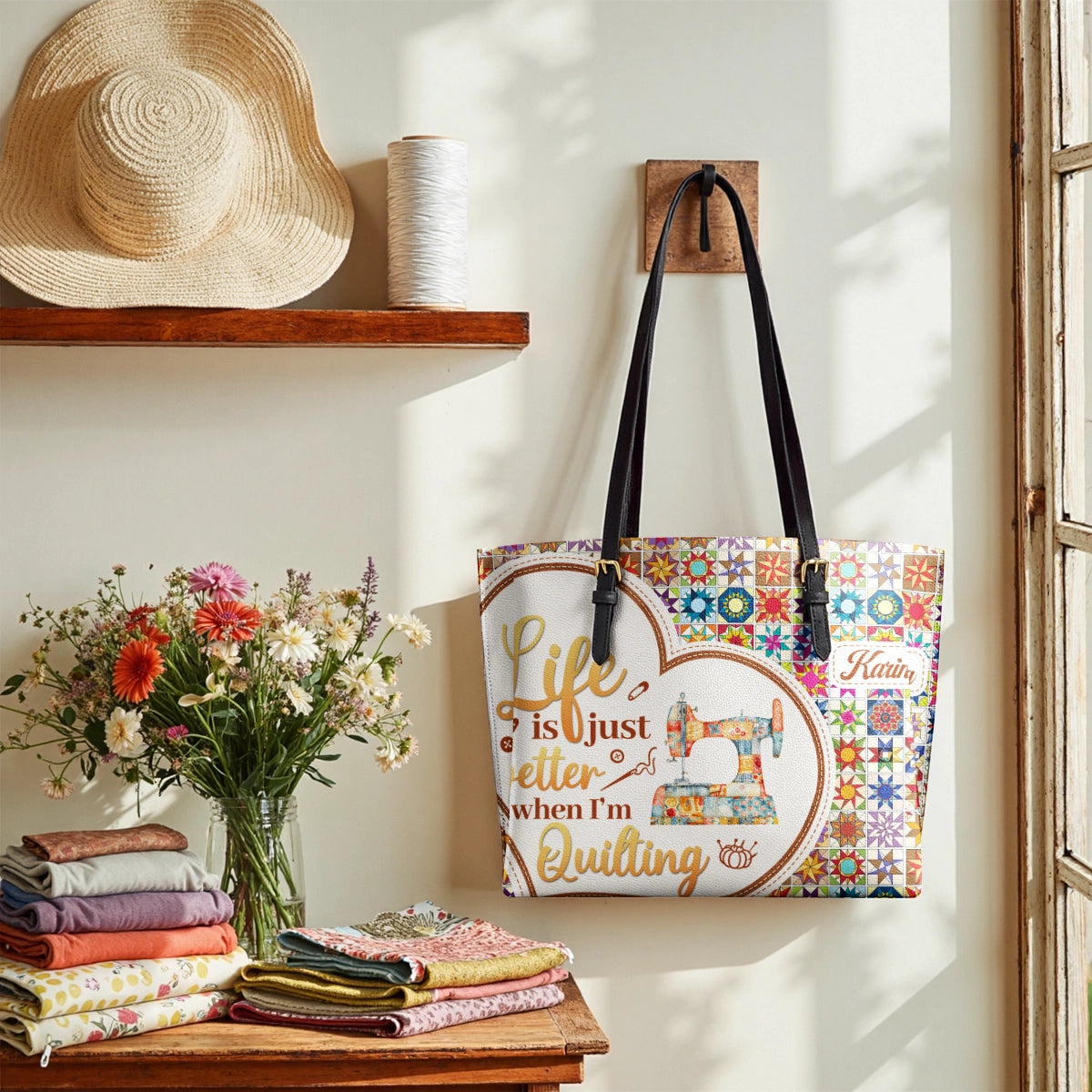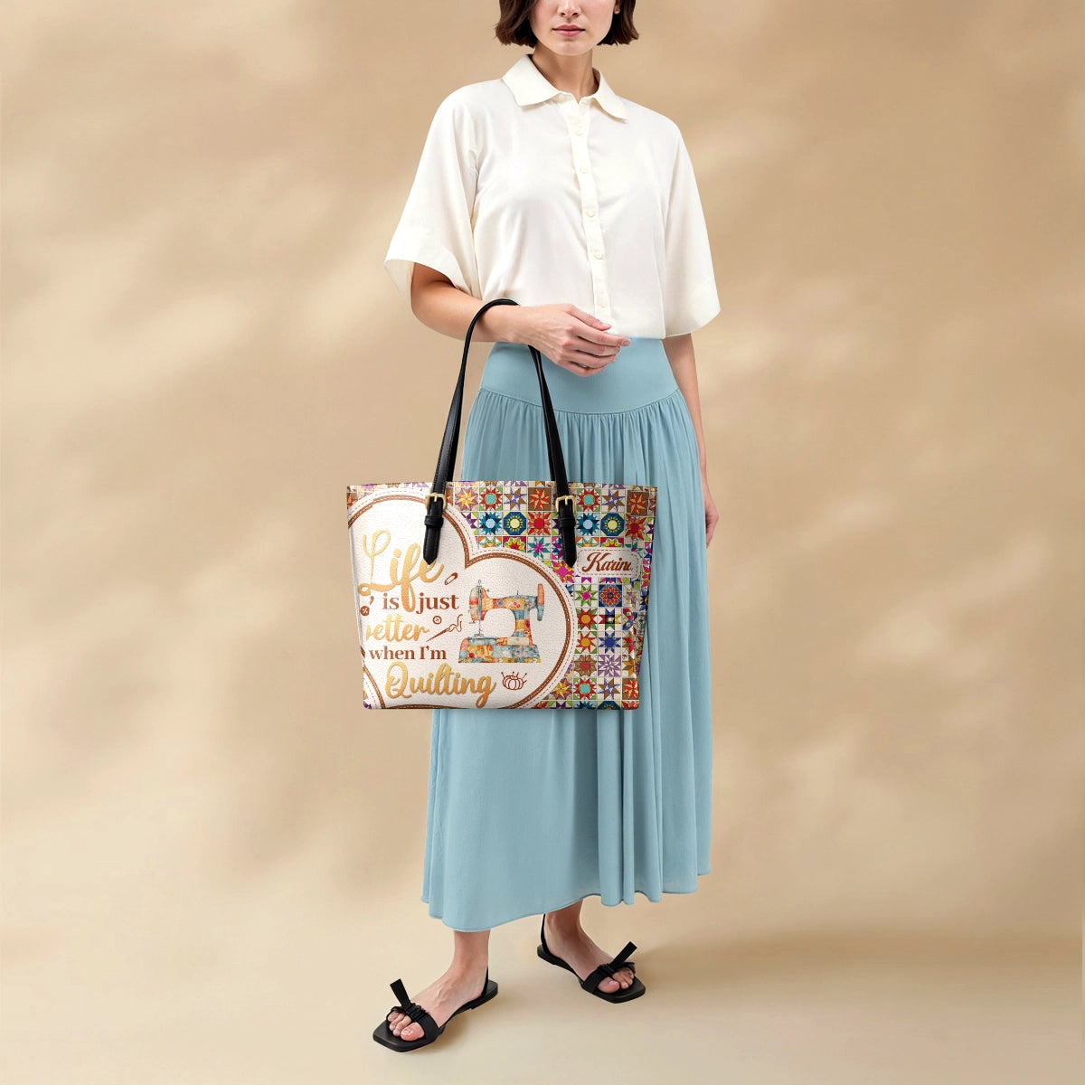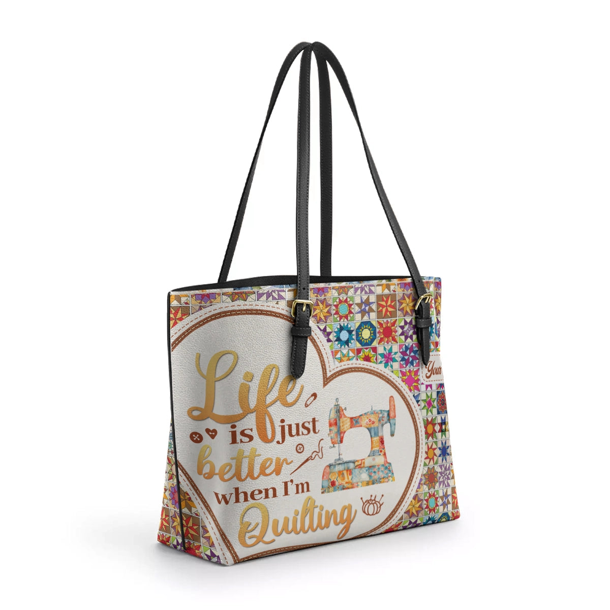 BloomNeedle QuiltJoy Bloom Personalize Leather Tote Bag