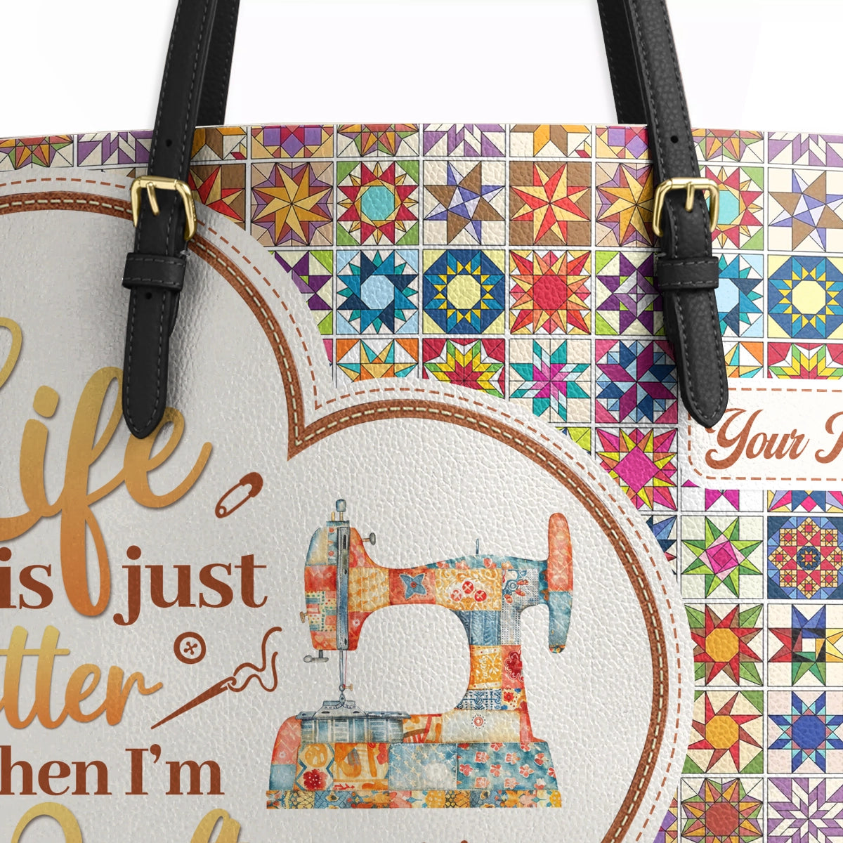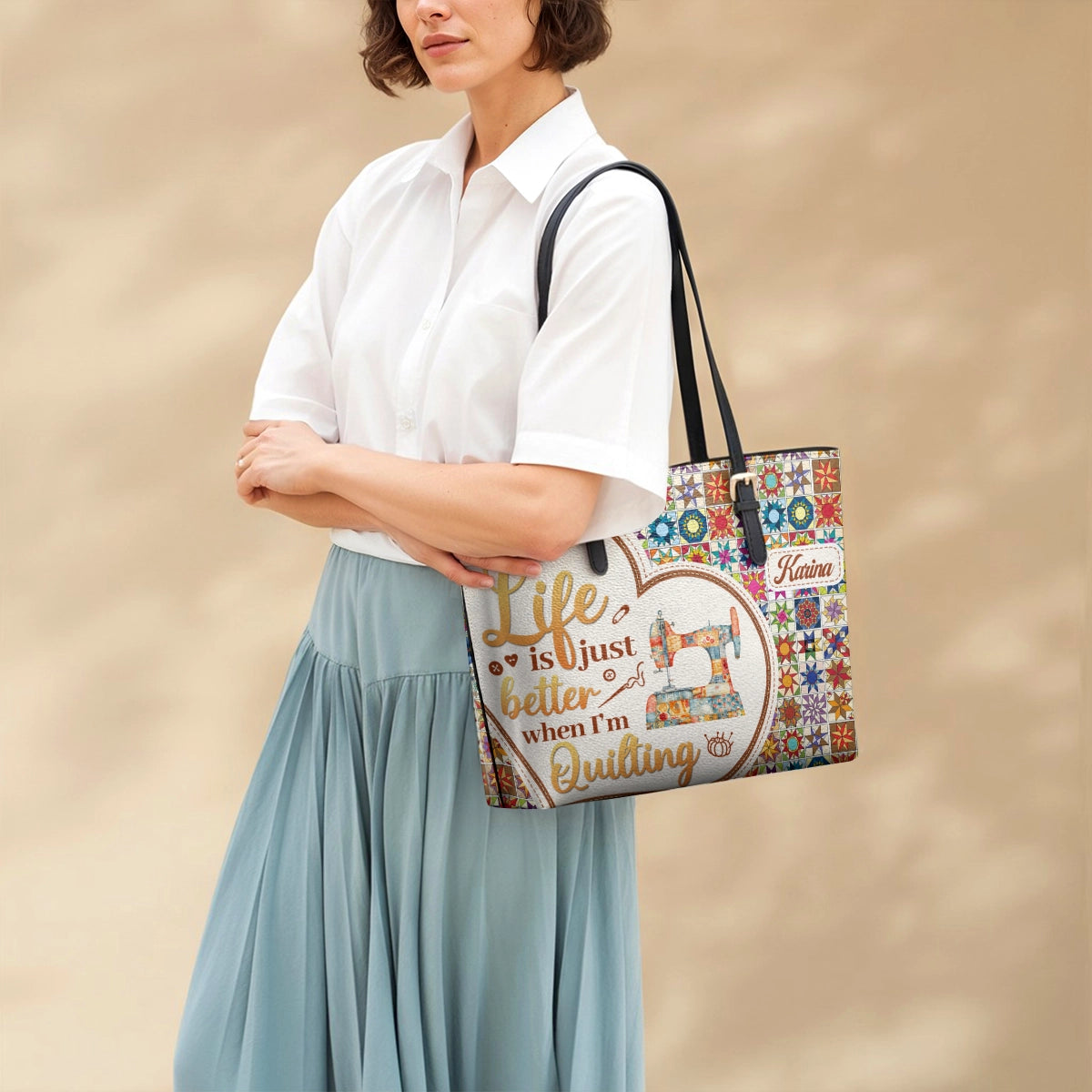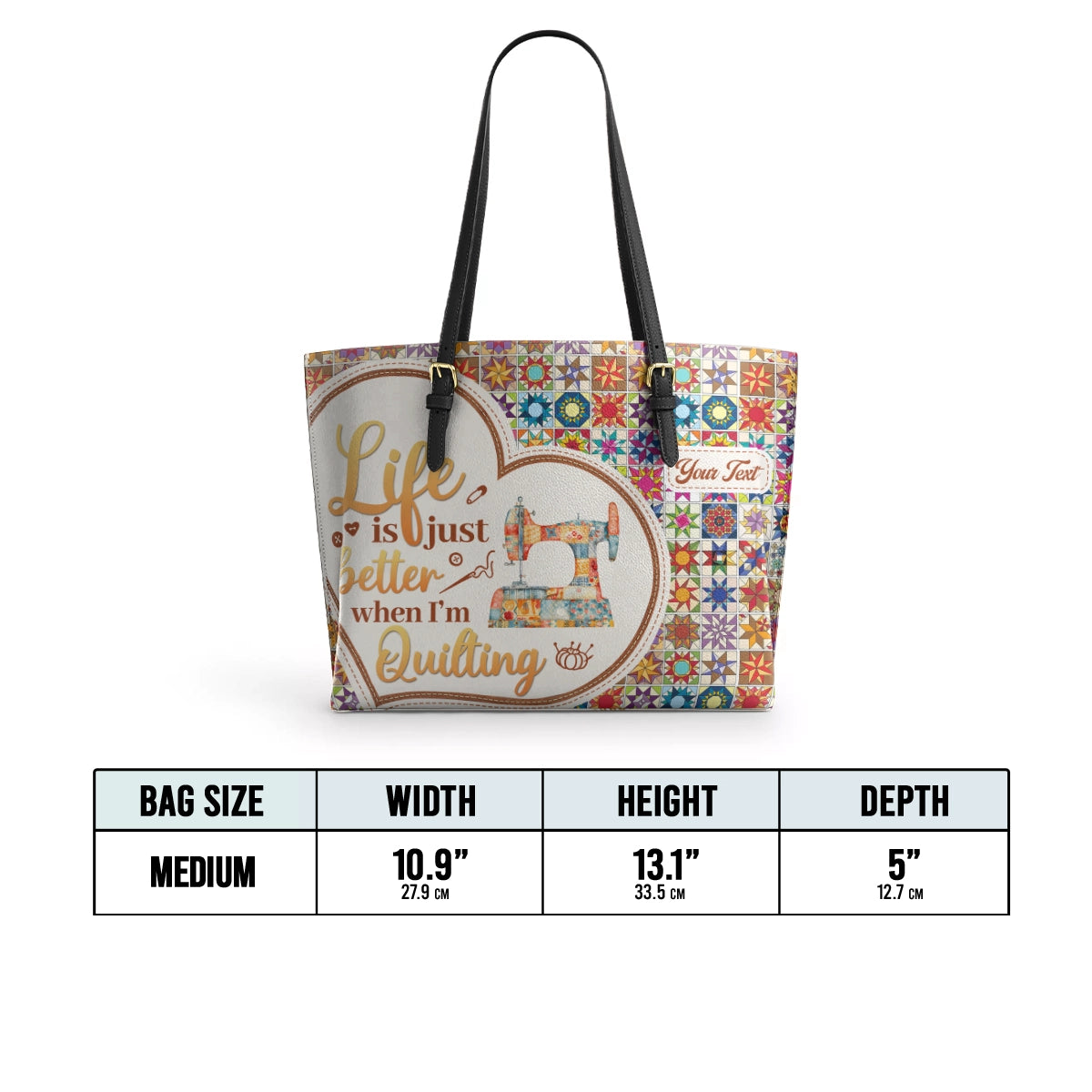BloomNeedle QuiltJoy Bloom Personalize Leather Tote Bag