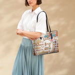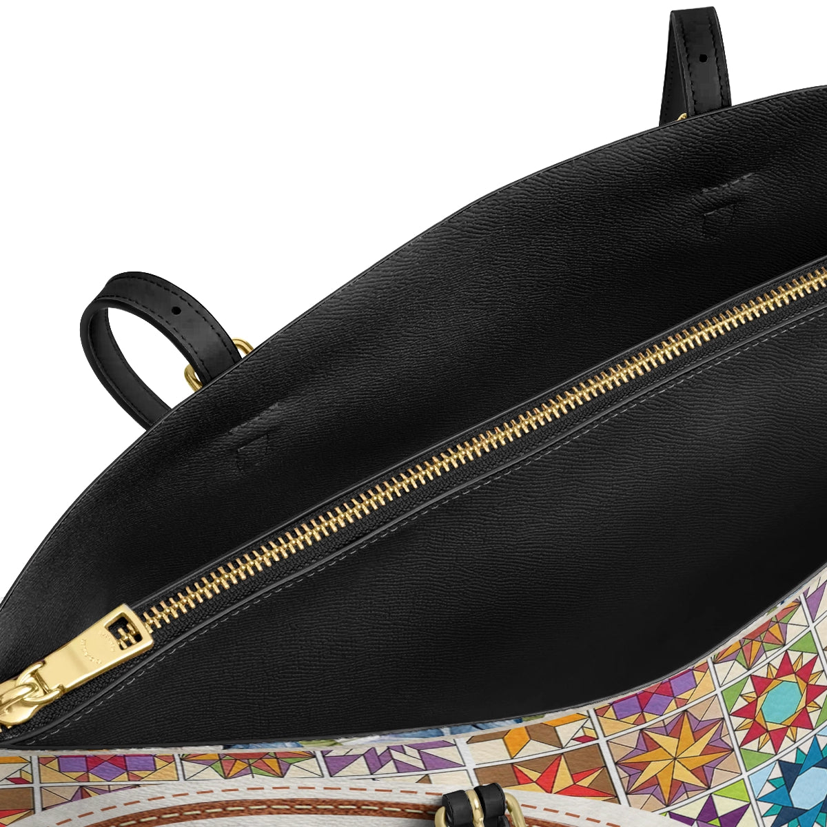 BloomNeedle Patchwork Bliss Leather Tote Bag