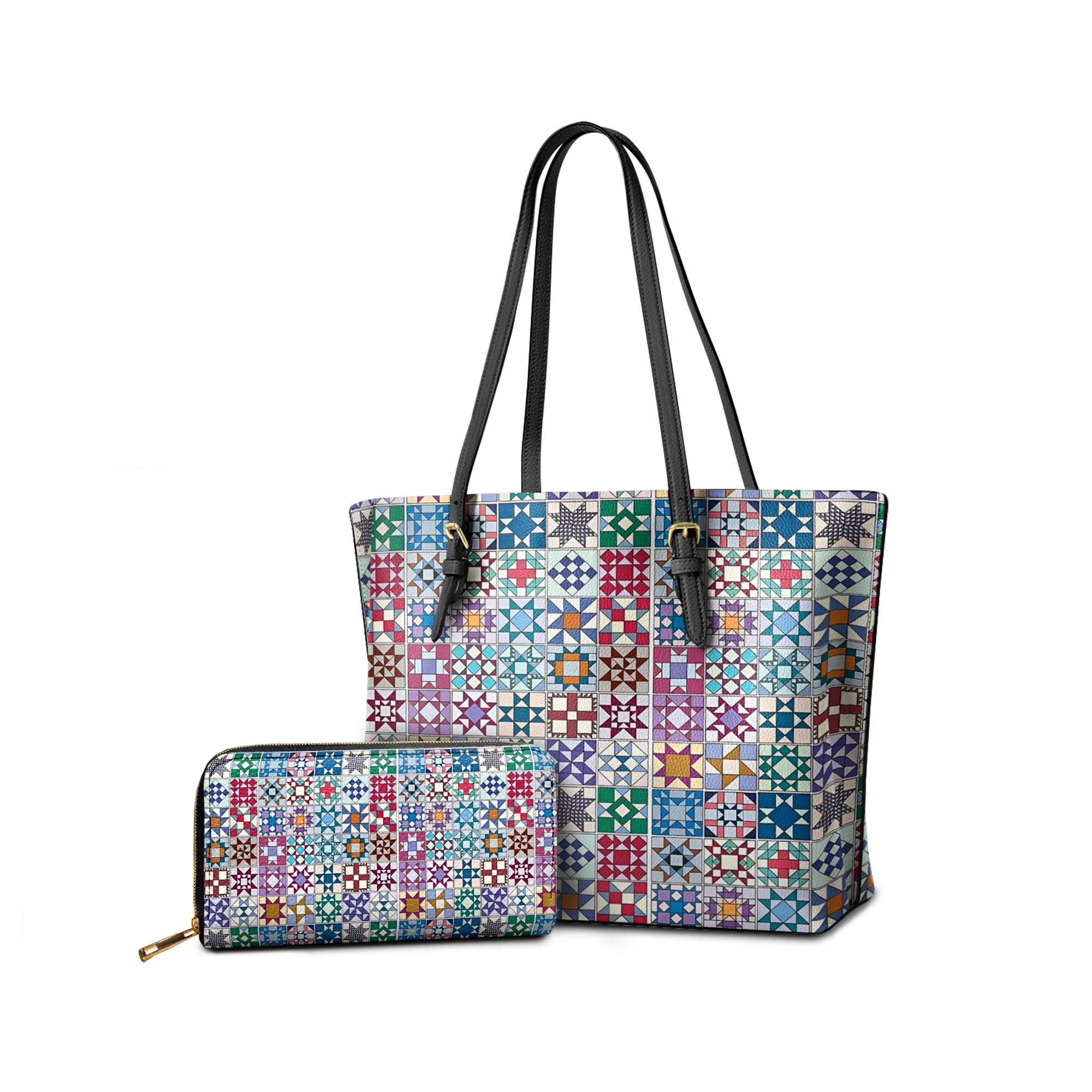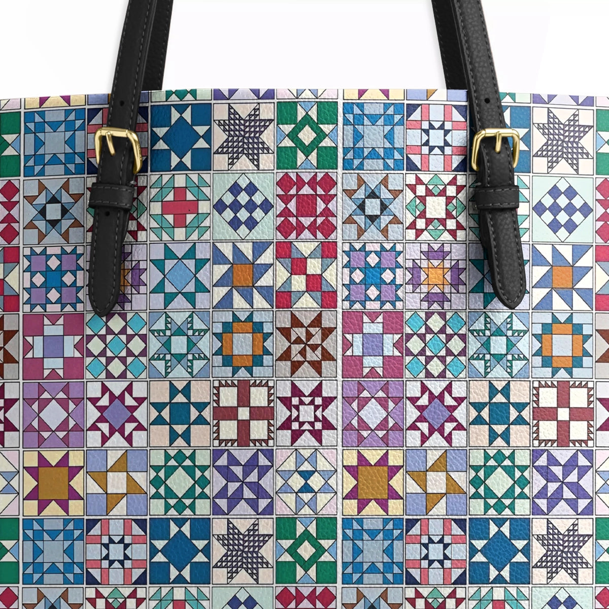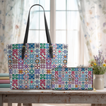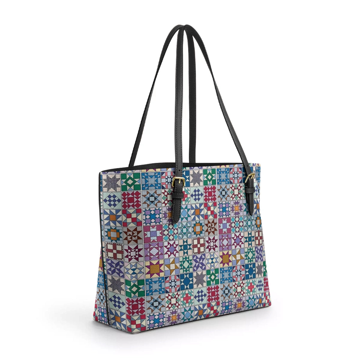 BloomNeedle Patchwork Bliss Leather Tote Bag