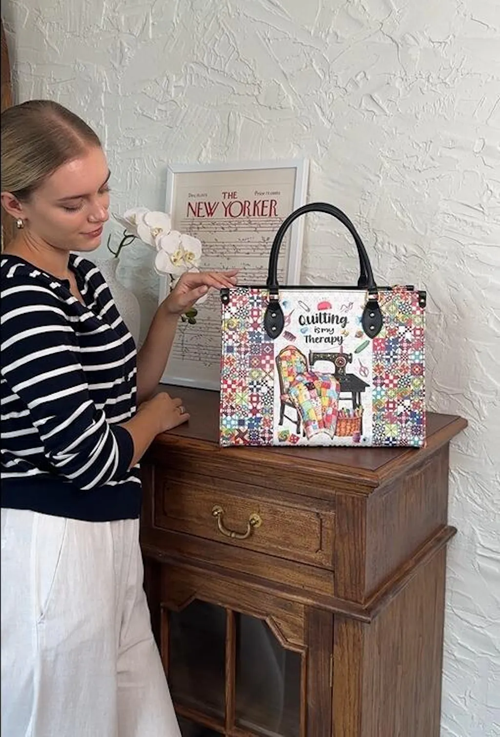 I ordered this bag as a gift for my mother, who is an avid quilter, and she was absolutely delighted. The leather is soft and flexible, the print is vivid and well-protected, and the design is unlike anything else on the market. It’s perfect for both everyday use and special occasions. I’m considering getting one for myself!